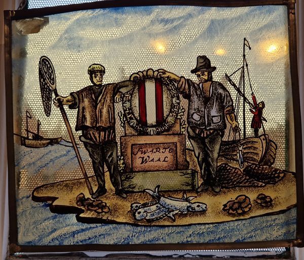 Glas in lood raam met het wapen van Swarte Waal. Het wapen is gelijk aan het heerlijkheidswapen. Het wordt in ieder geval al in de 17e eeuw als zodanig vermeld. De palen worden soms ook gegolfd aangegeven. De betekenis van het wapen is niet bekend. In de Nederlandsche Stads- en Dorpsbeschrijver wordt het wapen ook ...