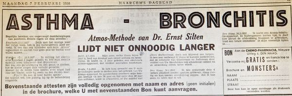 Doos met een electrisch aangedreven inhaler volgens de Atmos-methode van dr. Ernst Silten. Dit astma-bronchitus- medicijn werd voor WO II, in kranten en tijdchriften aanbevolen ( zie foto FZ2487.01_D.jpg). Tevens zit in de doos een hand-atmos voor het inhaleren van Glycirenan en Jodorenan.