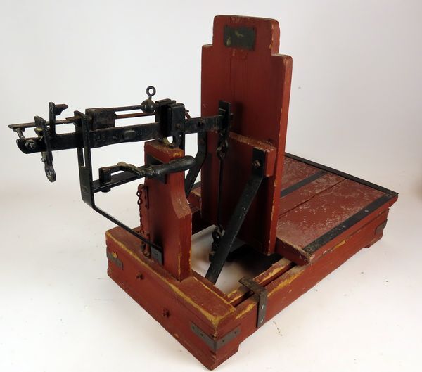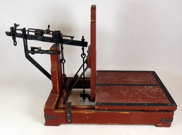 Klein model bascule of weegschaal model 13 van het merk V.I.W. met een weegvermogen van 50 kg. Deze bascule is in een oud-Hollandse (bloedrode) kleur beschilderd. De weegplaat wordt met zwarte metalen strips bij elkaar gehouden. Mogelijk betreft het hier een tuindersbascule, alhoewel gebruik in een winkel ook denkbaar is.