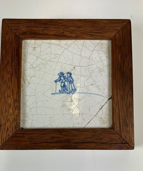 17de eeuwse Delftse tegel met afbeelding van wandelende man en vrouw