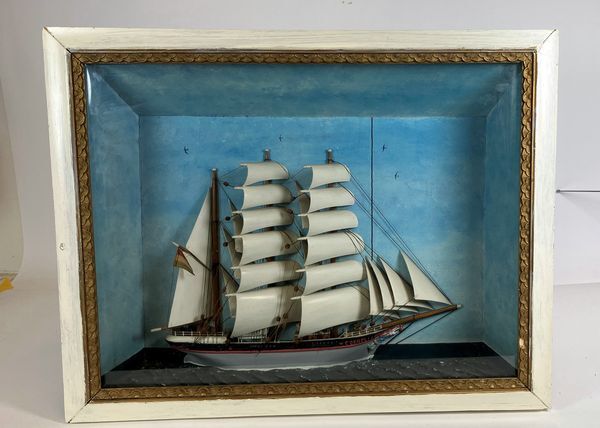 Diorama scheepsmodel van een driemaster "Cornelia".