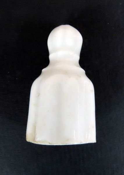 Trekkoordknop , wit pocelein, geribbeld uiteinde.