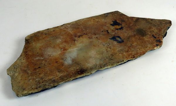 Stuk van een terracotta vloertegel, ook wel boerenplavuis of estrik genoemd, gevonden in steeg opzij van Dorpsstraat te Zwartewaal t.h.v. de woningen van Van Duin en Stolk.