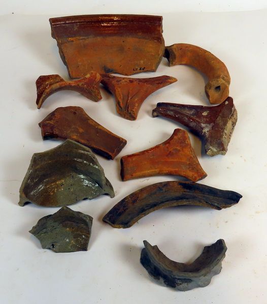 8 scherven roodbakkend, gedeeltelijk geglazuurd aardewerk; twee scherven genummerd. Tevens 3 scherven grijsbakkend, geglazuurd aardewerk. Vondst is gedaan bij de Rijswaardsedijk in Zwartewaal..