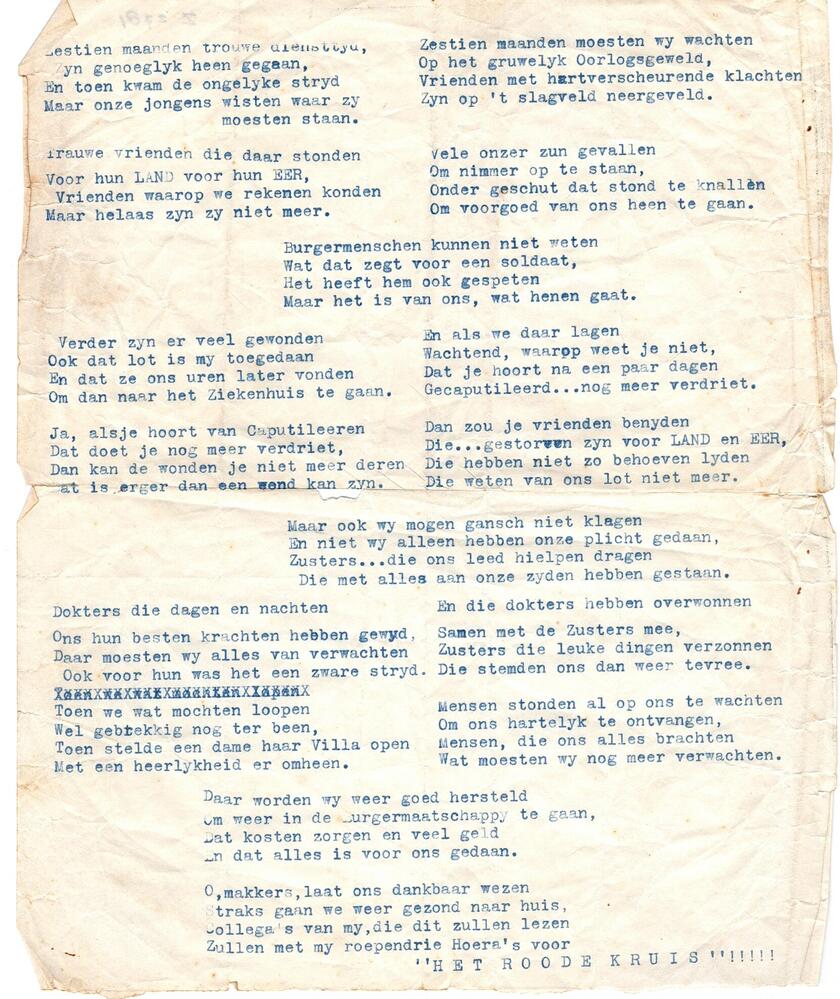 Deze anonieme en ongedateerde doorslag looft het bijzondere en goede werk van het Roode Kruis in de Tweede Wereldoorlog.