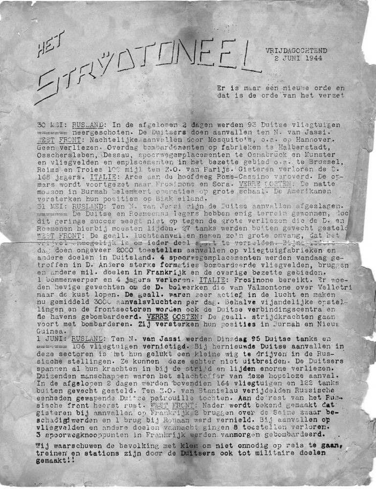 Exemplaar van "Het STRIJDTONEEL, dd 2 juni 1944.