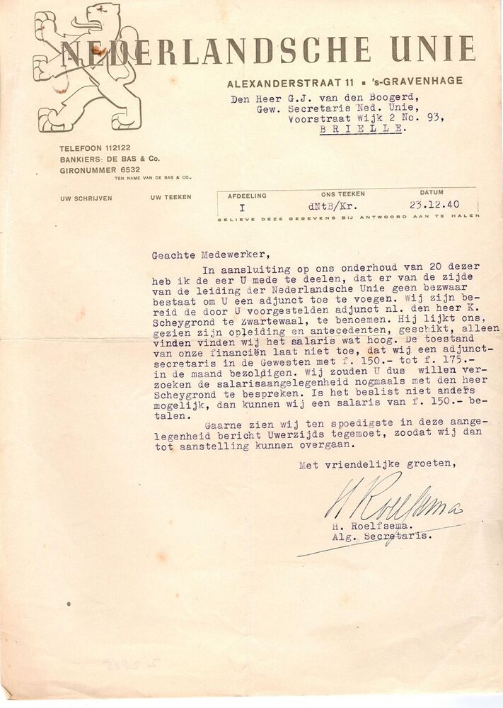 Brief aan de Heer G.J. van den Boogerd betreffende toevoeging adjunct.