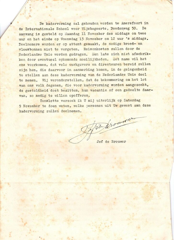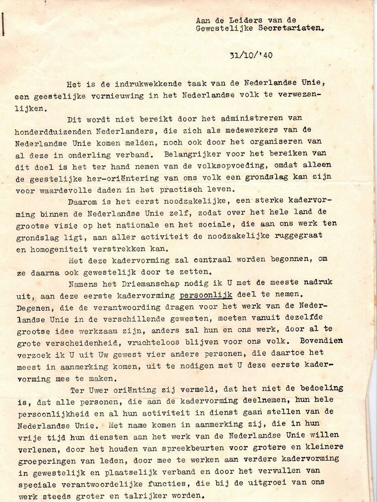 Brief aan de leiders van de Gewestelijke Secretariaten met oproep tot deelname aan de kadervorming.