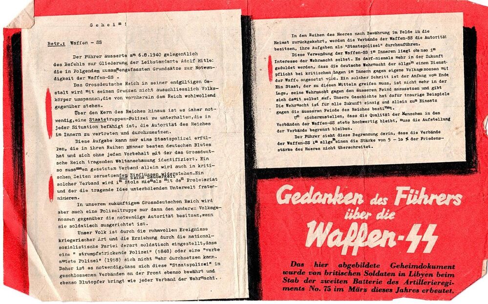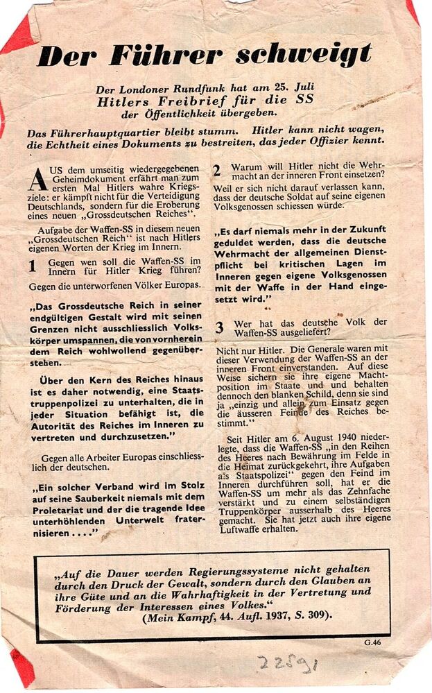 Pamflet "Der Führer schweigt, Gedanken des Führers über dei Waffen-SS"