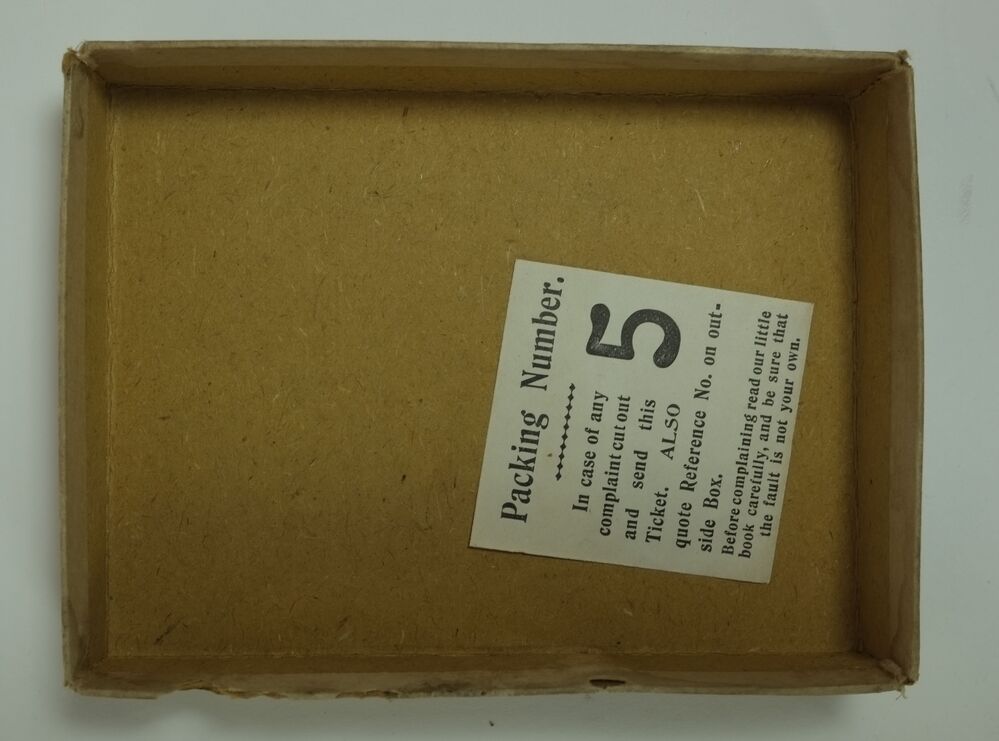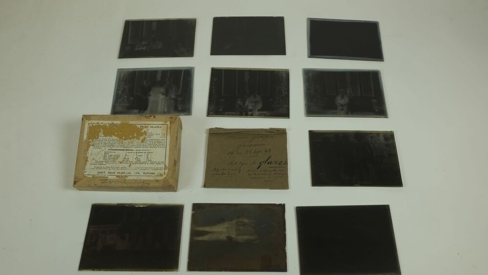 Bruin kartonnen doos van de firma Paget Prize Plate Co. L.T.D. Watford bevattende 10 glasplaatnegatieven , gemaakt op 16 en 23 september 1928.