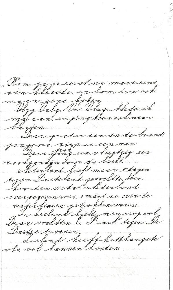 Kopie van een opstel met de titel : "In het begin van de oorlog", het opstel is waarschijnlijk gemaakt als opdracht op school. Dit opstel is geschreven door J.M. en beschrijft de belevenis van de schrijver/ster in de eerste dagen van de oorlog.