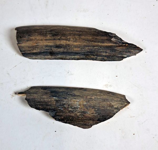 Twee stukken van een slagtand van een mammoet. Vondst is gedaan in de zandwinput in Heenvliet.