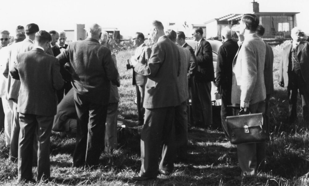 Foto, zwart/wit, Eerste bungalow aan de Zalmlaan. De uitbreiding op de gorzen aan de westkant van de haven.