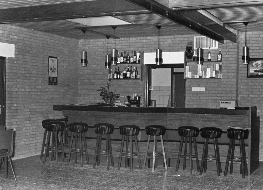 Foto, zwart/wit, Opening Dorpshuis "De Gaffelaar". Interieur, de bar