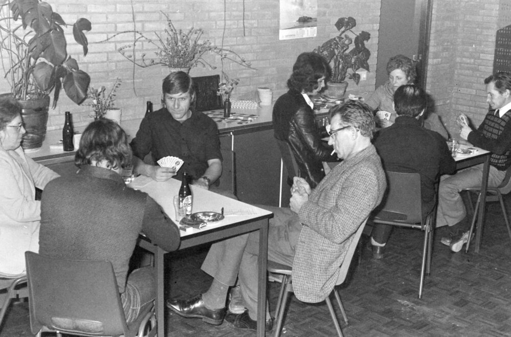 Foto, zwart/wit, Opening Dorpshuis "De Gaffelaar". Klaverjasvereniging,