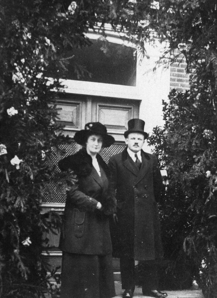 Burgemeestersechtpaar Da Silva in deftige zwarte kleding met hoed