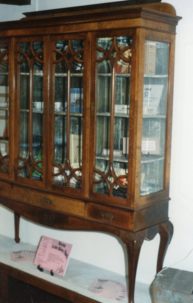 Kleurenfoto van een vitrinekast.