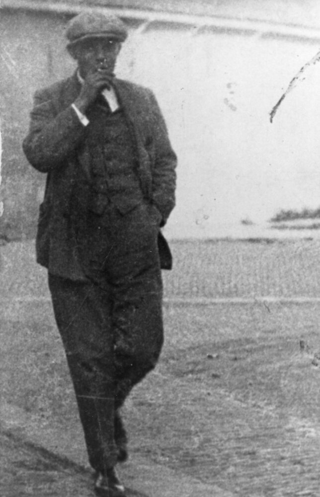 Foto zwart/wit: Dirk Sluimer op de "Vlakte", dit is de plaats waar nu het oorlogsmonument is.