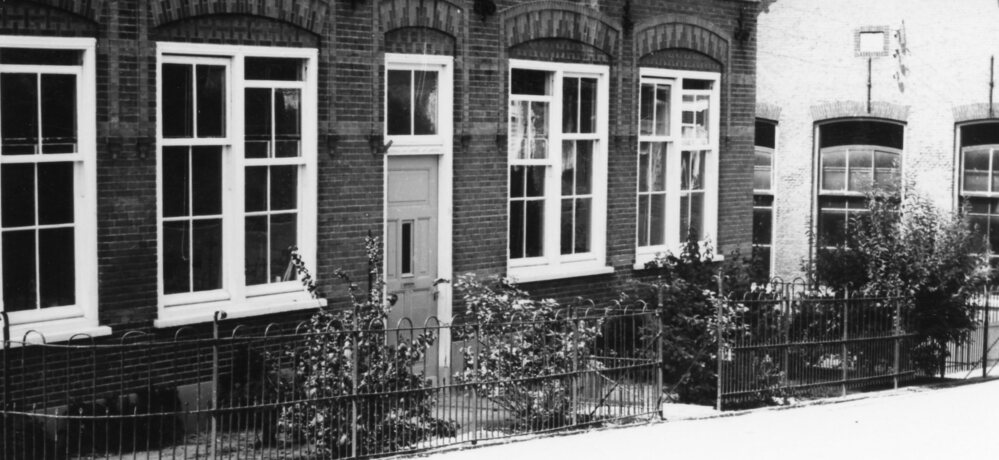 Foto zwart/wit: Schoolstraat 1 . Kleuterschool voorzijde.