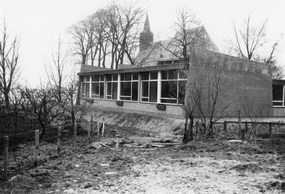 Foto zwart/wit: Schoolstraat 3 . Nieuwbouw O.L.S. 't Want.