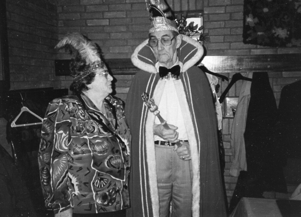 Foto zwart/wit. Carnaval vereninging "De hobbelende Bierviltjes".