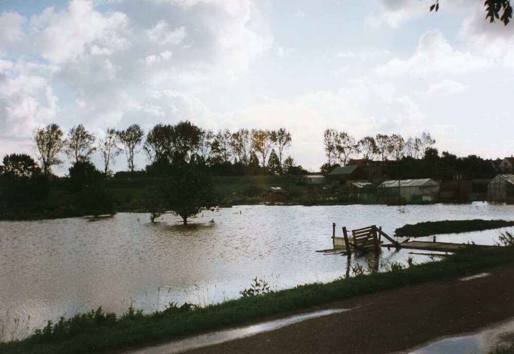 Foto kleuren. Wateroverlast. Looierij onderwater.