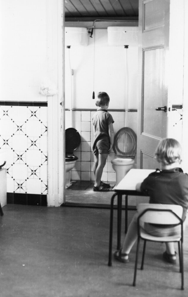 Foto zwart/wit: Schoolstraat 1, Kleuterschool interieur anno 1970.