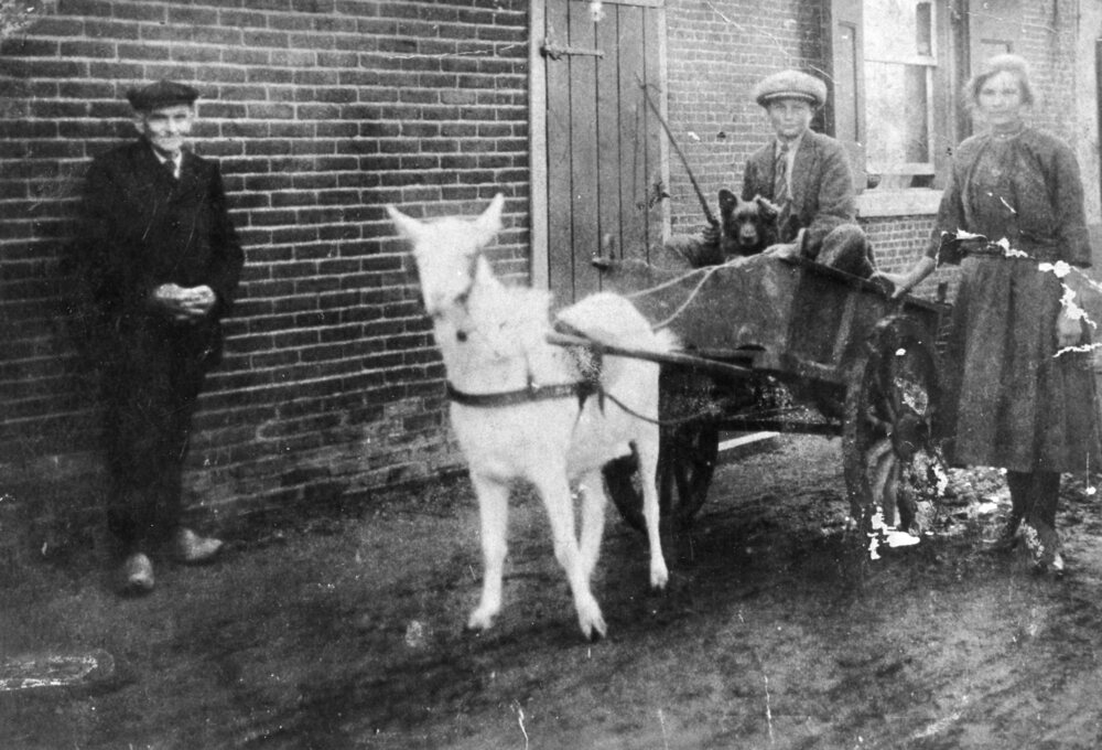 Foto zwart/wit: M.Lageweg op de bokkenwagen. Voor beschrijving foto zie bijlage. 19-01-2013 Volgens Marius Lageweg geen foto van zijn moeder en hemzelf.
