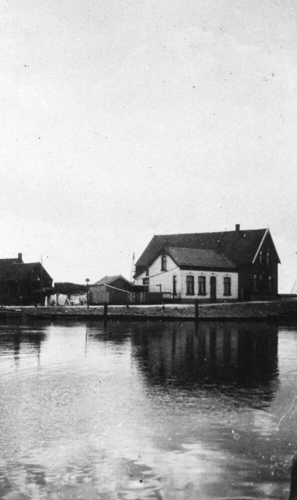 Foto, zwart/wit, Havenkade, Werfplein.witte woning van de fam. Bravenboer. zie achterzijde foto en bijlage.