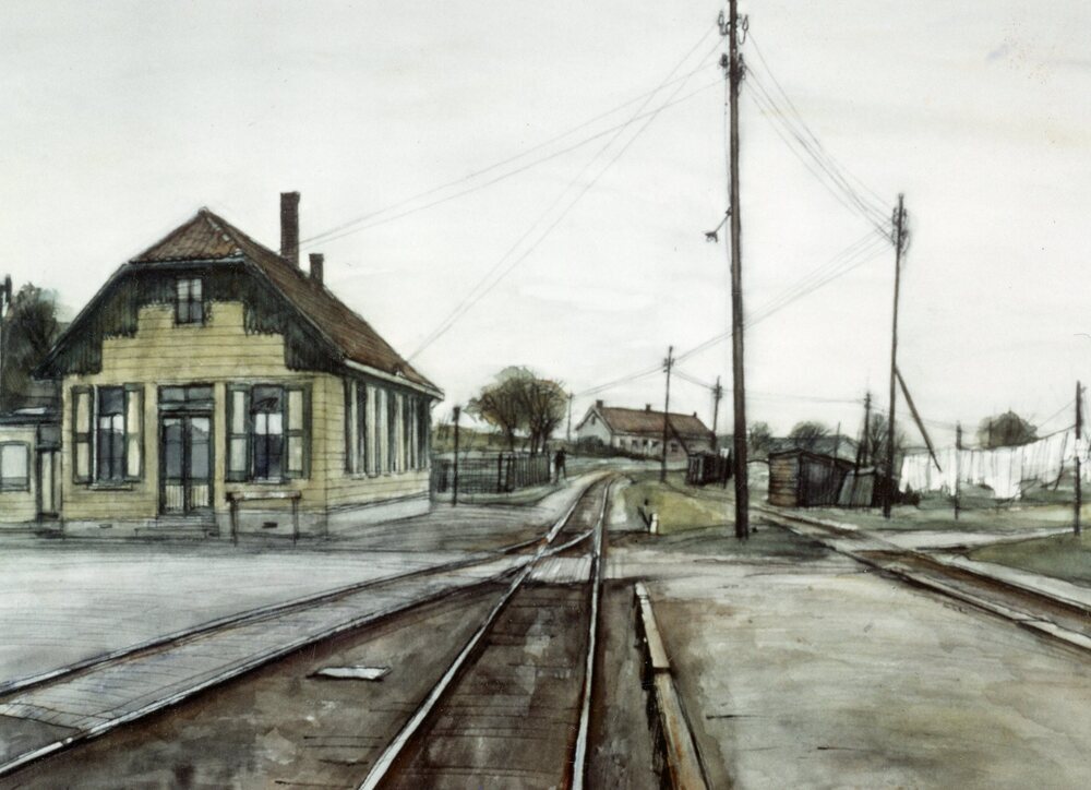 Foto, zwart/wit, Tramstation Molendijk 10 Zwartewaal. Dit was het wachthuis bewoond door fam. Bas Vermaat. Zie bijlage foto