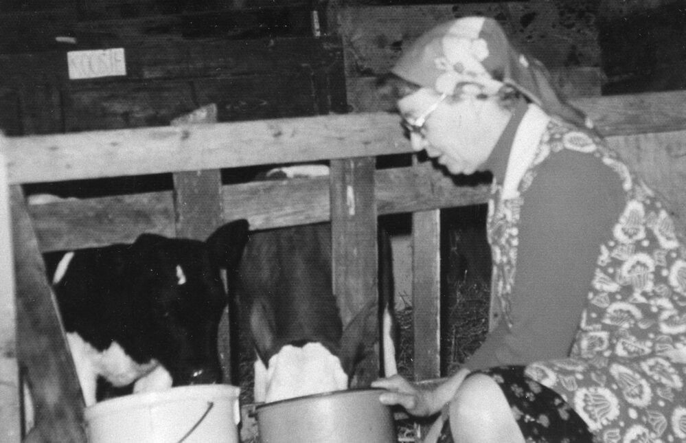Boerin voert de kalveren