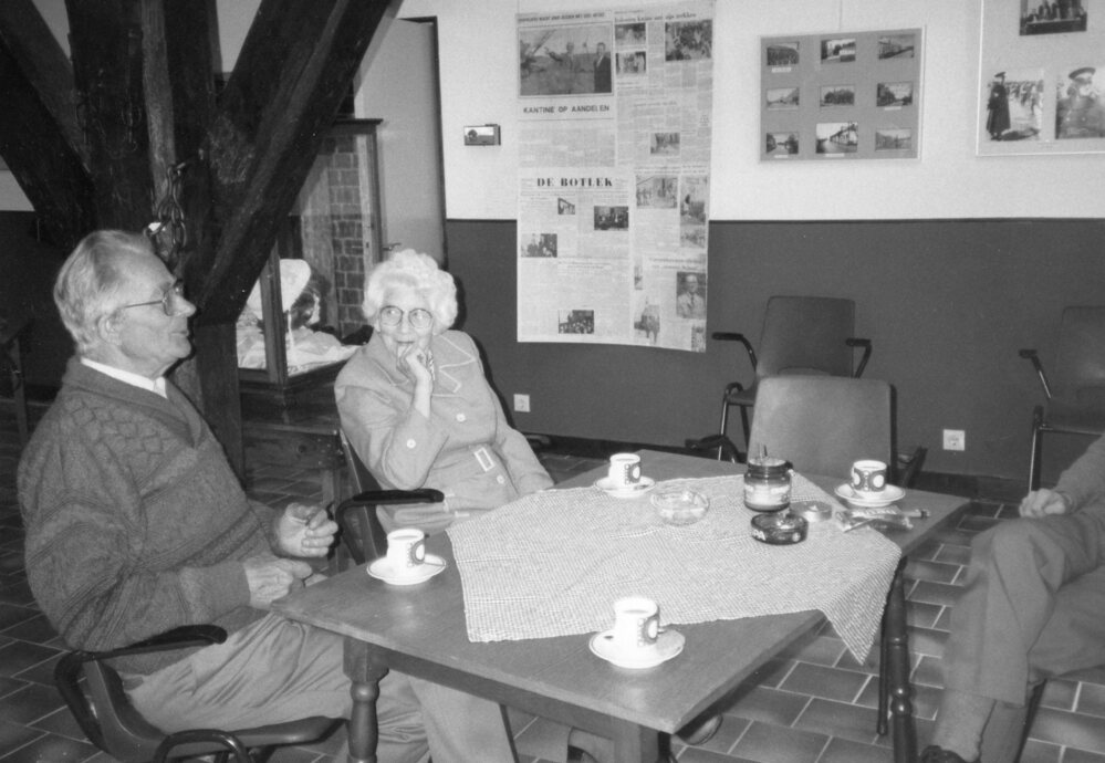 Foto,zwart/wit, Mevr van Hulst en dhr Anton v.d. Zee op de begane grtond van de zeilmakerij.