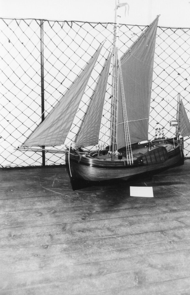 Foto,zwart/wit, Model van een Hoeker vervaardigd door dhr Anton v.d. Zee.