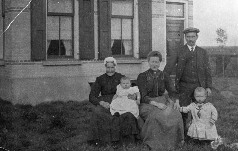 Gezin Hoftijzer. vlnr Oma met Anna, Mevr. Hoftijzer (geb. van der Wel), Jan Hoftijzer en Jaap
