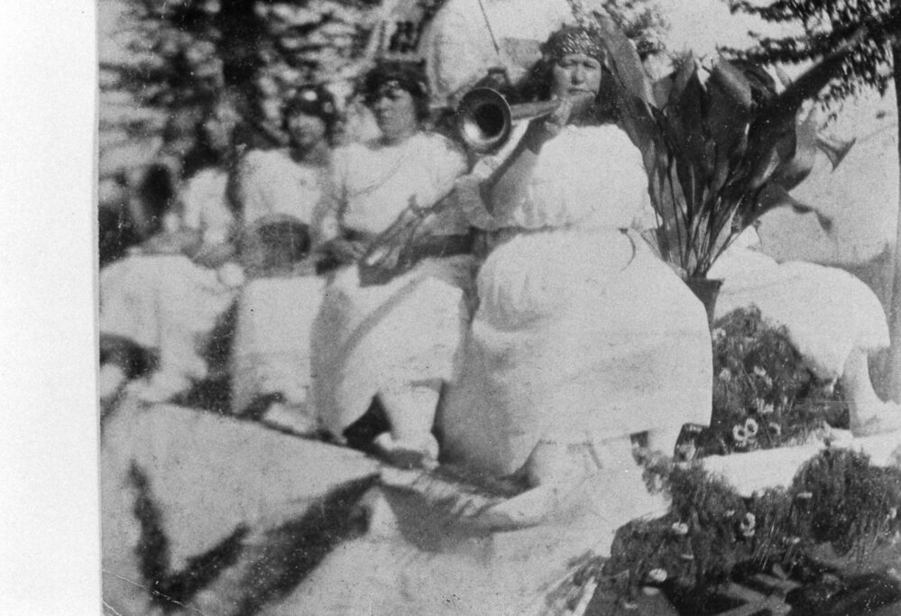 Foto zwart/wit: Feestwagen met oa Aaltje en Ma Kievits