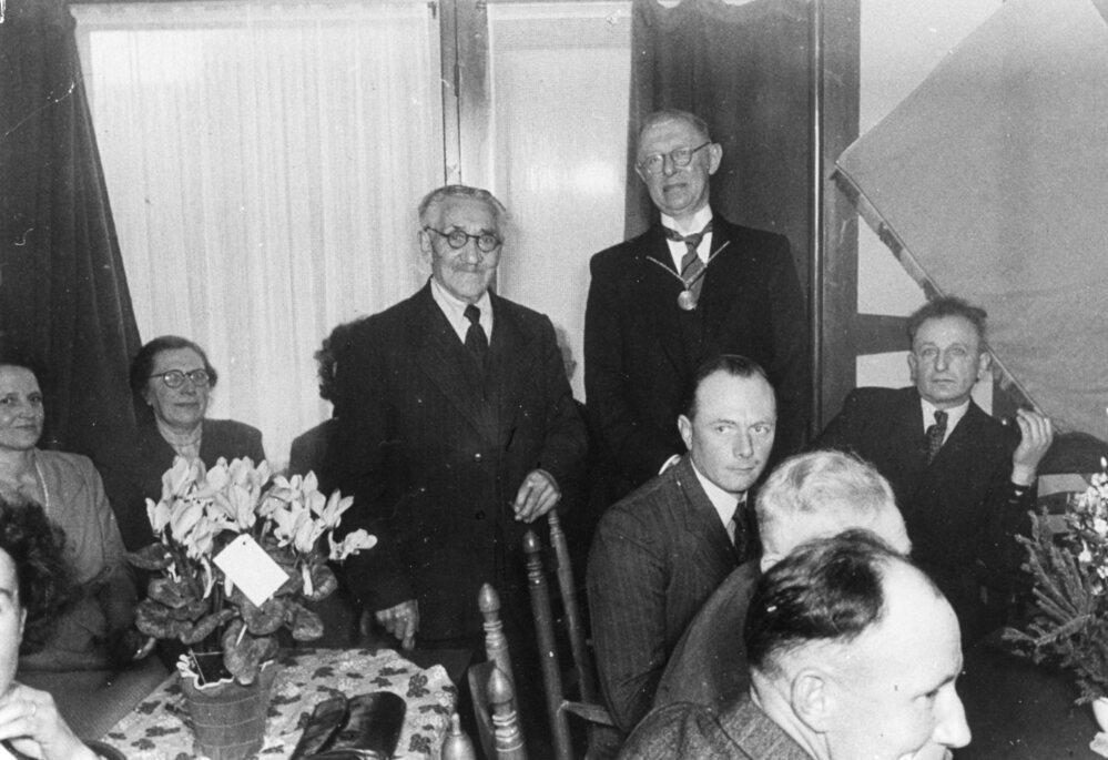 Foto zwart/wit: Feestelijke bijeenkomst (verdere gegevens onbekend)