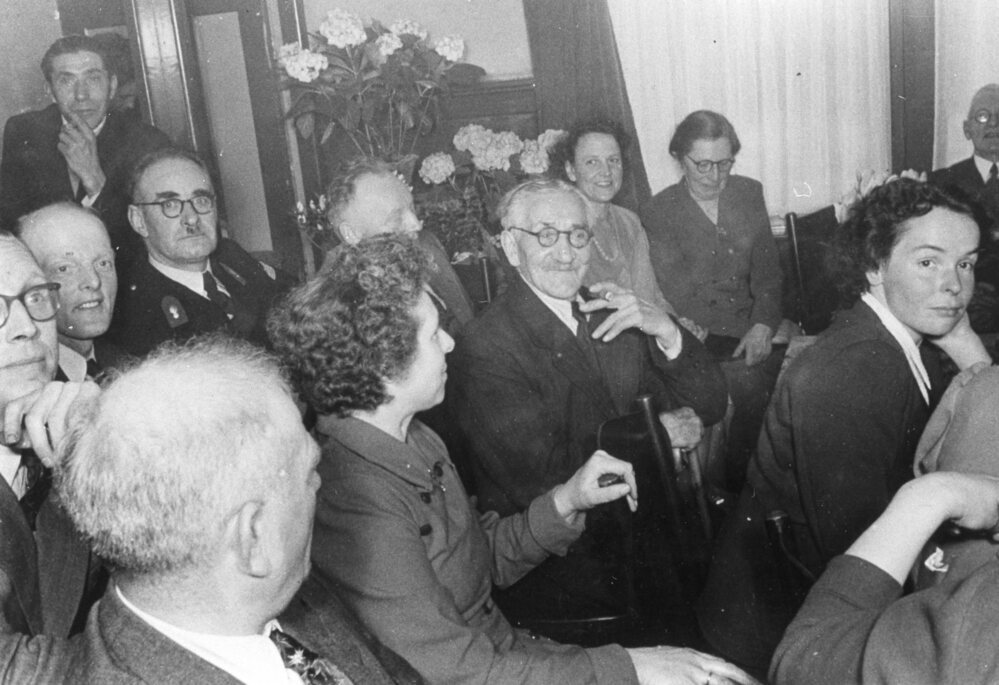 Foto zwart/wit: Feestelijke bijeenkomst ( personen onbekend )