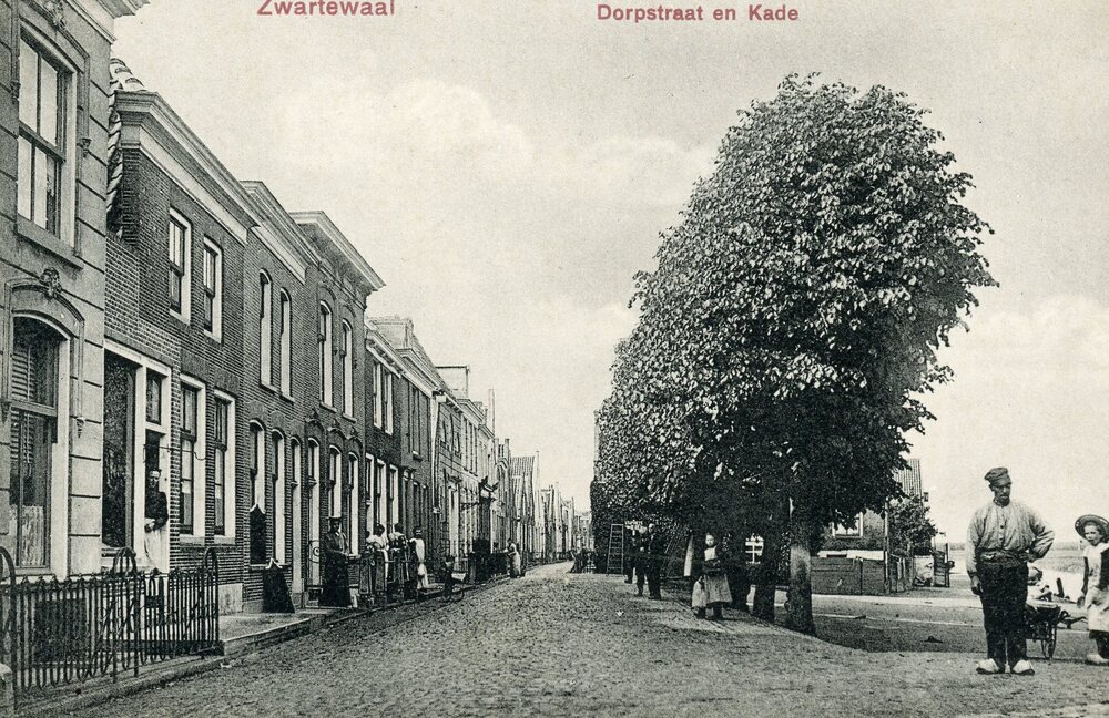 Ansichtkaart,Dorpstraat en Kade, rond 1910. Uitgeverij Gebr. Verschoor