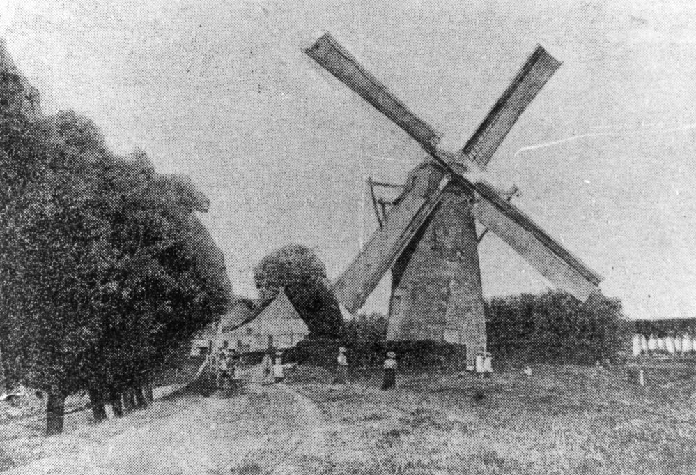 Foto zwart/wit: De molen van Zwartewaal aan de Molendijk ca. 1908. De molen brandde in 1934 af.