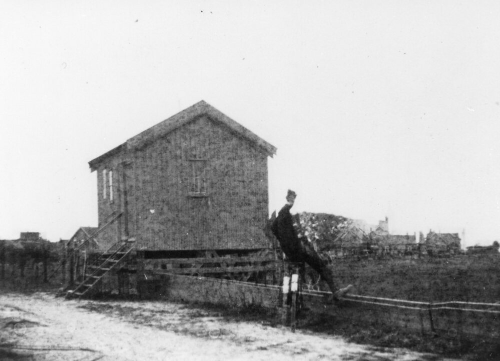 Foto zwart/wit: Elfwekenlaan wachthuisje voor de stoomboot naar Vlaardingen. zie bijlage
