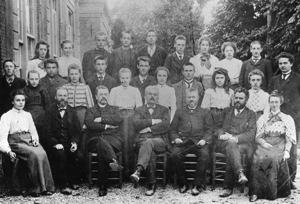 Foto, zwart/wit. Groepsfoto . ( personen onbekend )