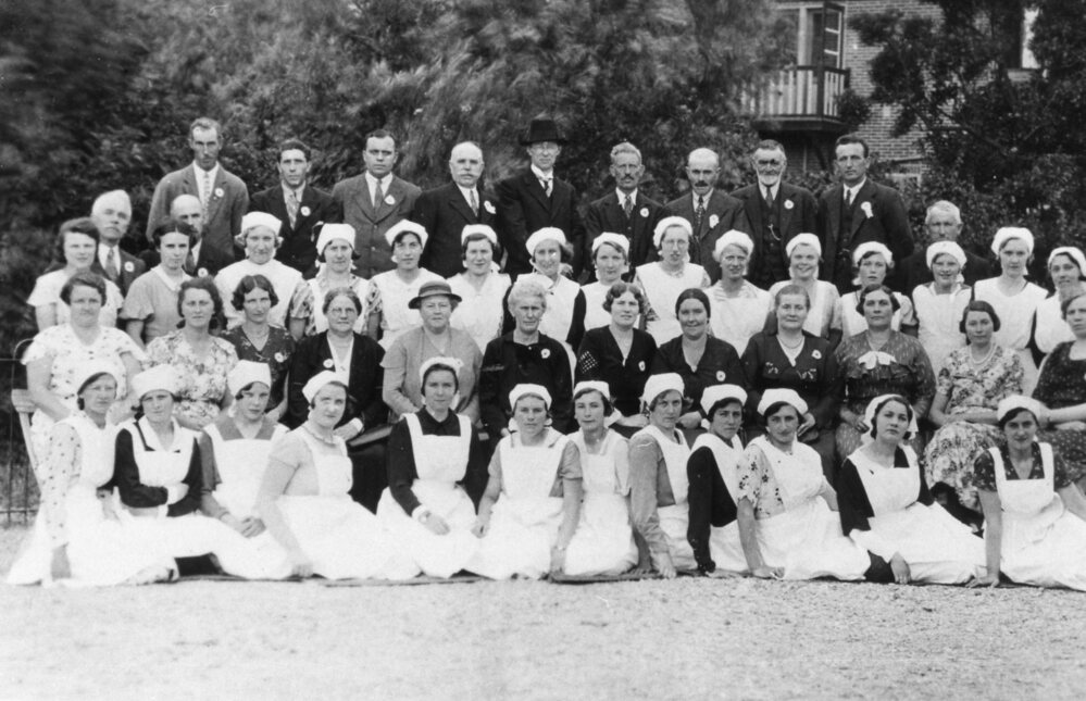 Foto, zwart/wit. Groepsfoto verpleegsters (en opleiders ?)