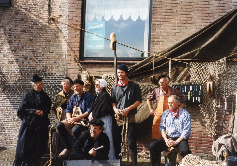 Foto, kleurenfoto, Op zaterdag 12 juni 1999, is door de Historische werkgroep Zwartewaal, een visserijdag gehouden in het kader van "Goudwater", een project van de Cultuurregio Voorne-Putten en Rozenburg. De leden waren gebkleed in de stijl van 1900-1920 en er werden oude ambachten uit de visserij getoond. In de Zeilmakerij werd de tentoonstelling "Tussen de ...