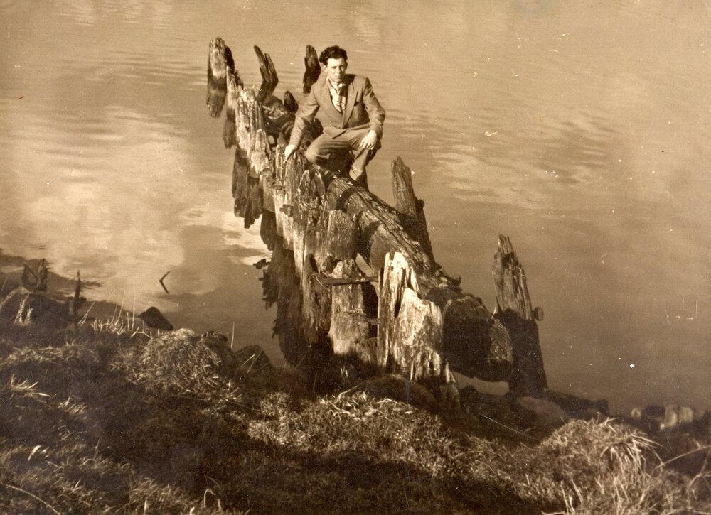 Foto zwart/wit: Brielse Maas. De laatste restanten van een van de paalhoofden in de Maas.