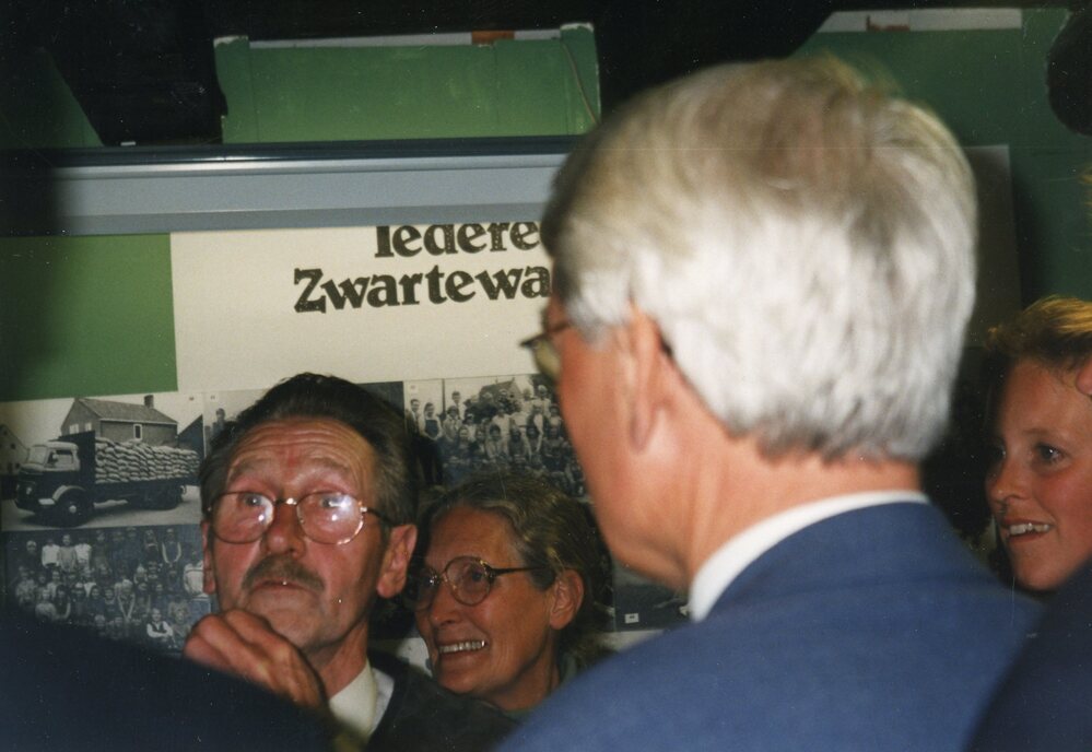 Foto: kleur, Genodigden op de opening tentoonstelling "deur de eeuwen heen". De man met de bril rechts is de heer v Hulst.