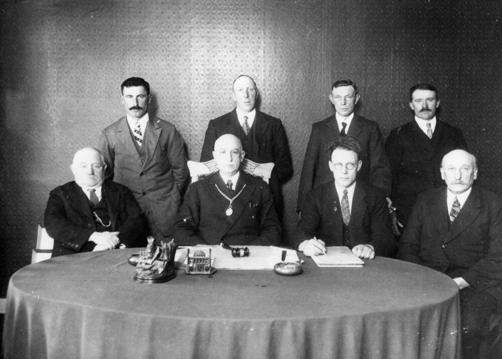Foto, zwart/wit, burgemeester en wethouders van Zwartewaal.