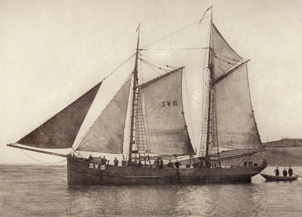 Foto volgetuigde schoener ZW15 op de rede van Texel