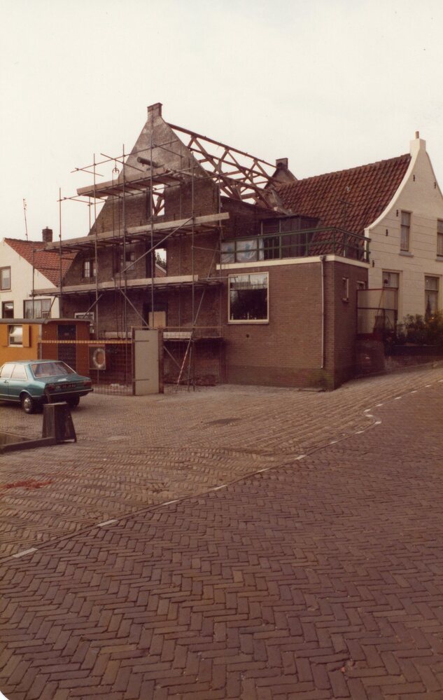 foto kleur, stellage aan de havenzijde wegens restauratie.