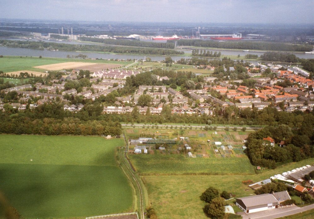 Foto kleur: Zwartewaal vanuit het zuiden met de Europoort op de achtergrond.