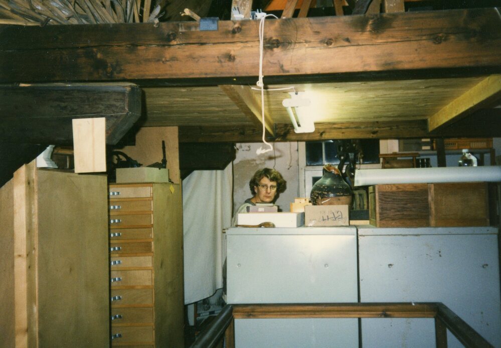 Foto: kleur, Opslag materiaal van de werkgroep op de zolder van het nettenpakhuis.